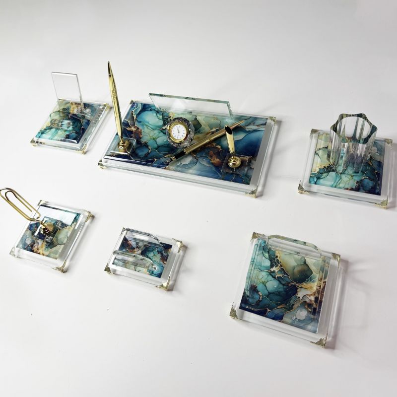 MD-6 Desenli Kristal Masa İsimliği Seti